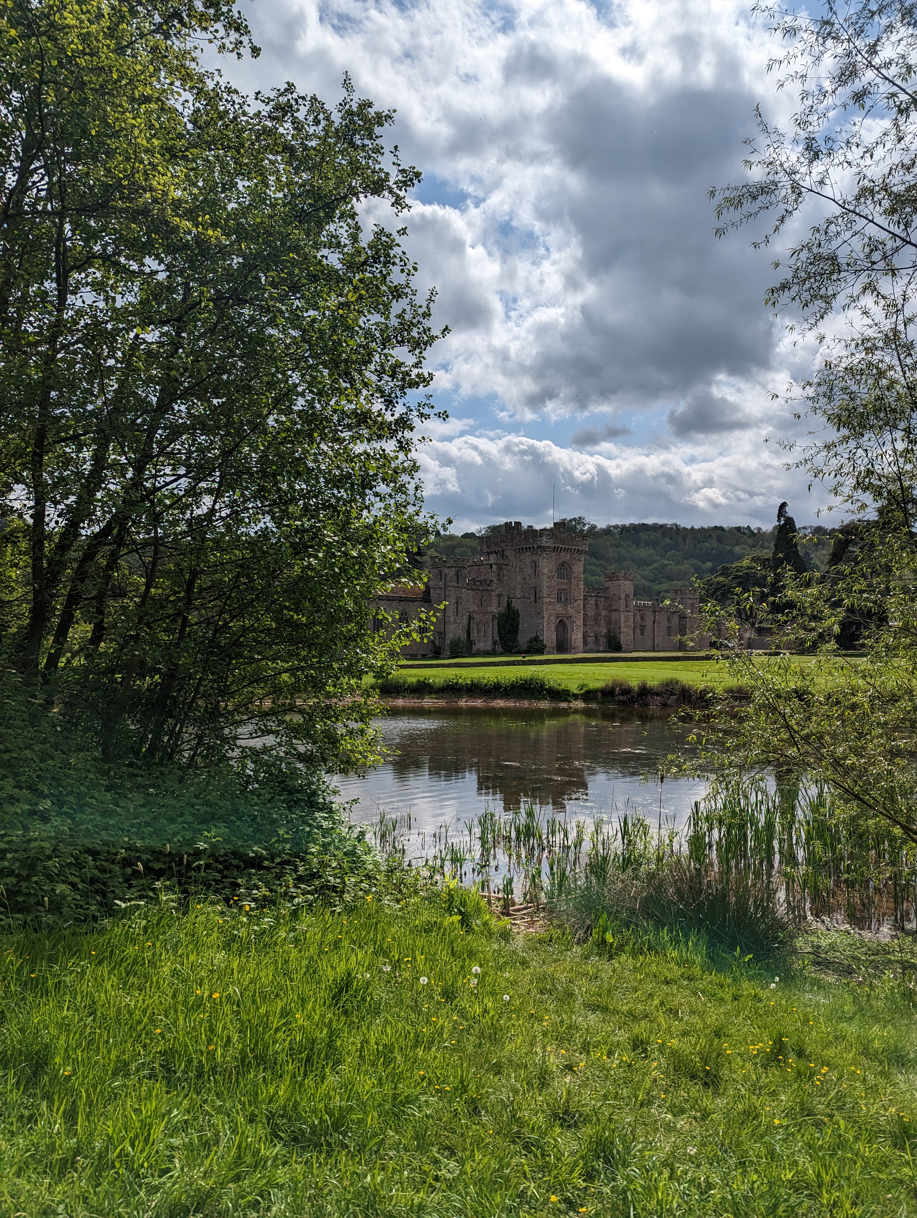 The Lake Walk follows the Humber Brook. This historic stream is lined with stone walls, a remnant of its past life as a narrow canal used by the estate. The shaded path guides you past a giant plane tree and over a small bridge, opening to beautiful castle views, gliding swans, and if you are lucky, grazing deer.